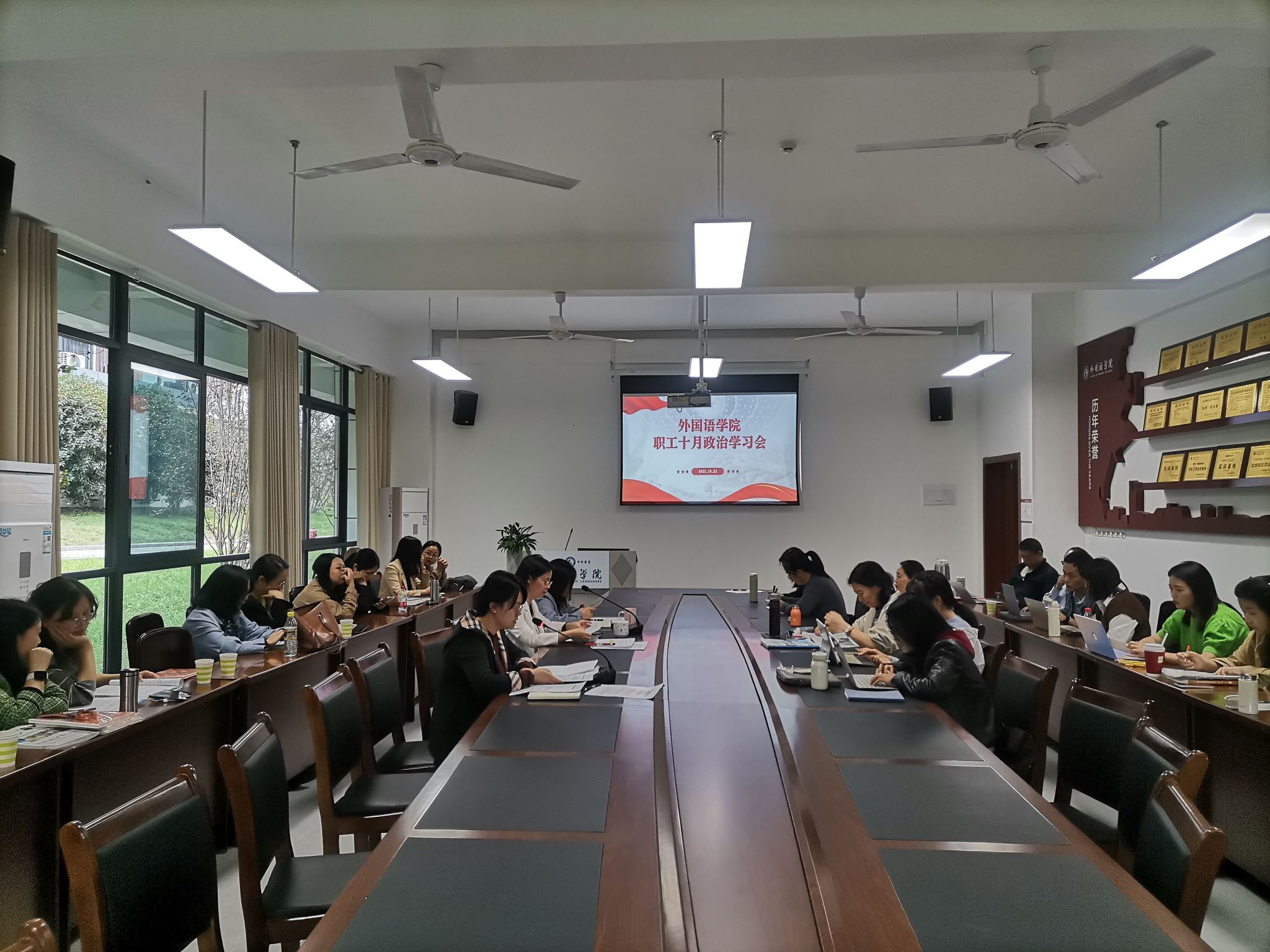 10月23日下午,外国语学院在城北校区文渊楼134会议室召开全体教职工政治学习会议。会议由学院党委副书记邓盛木主持,全体教职工参加。