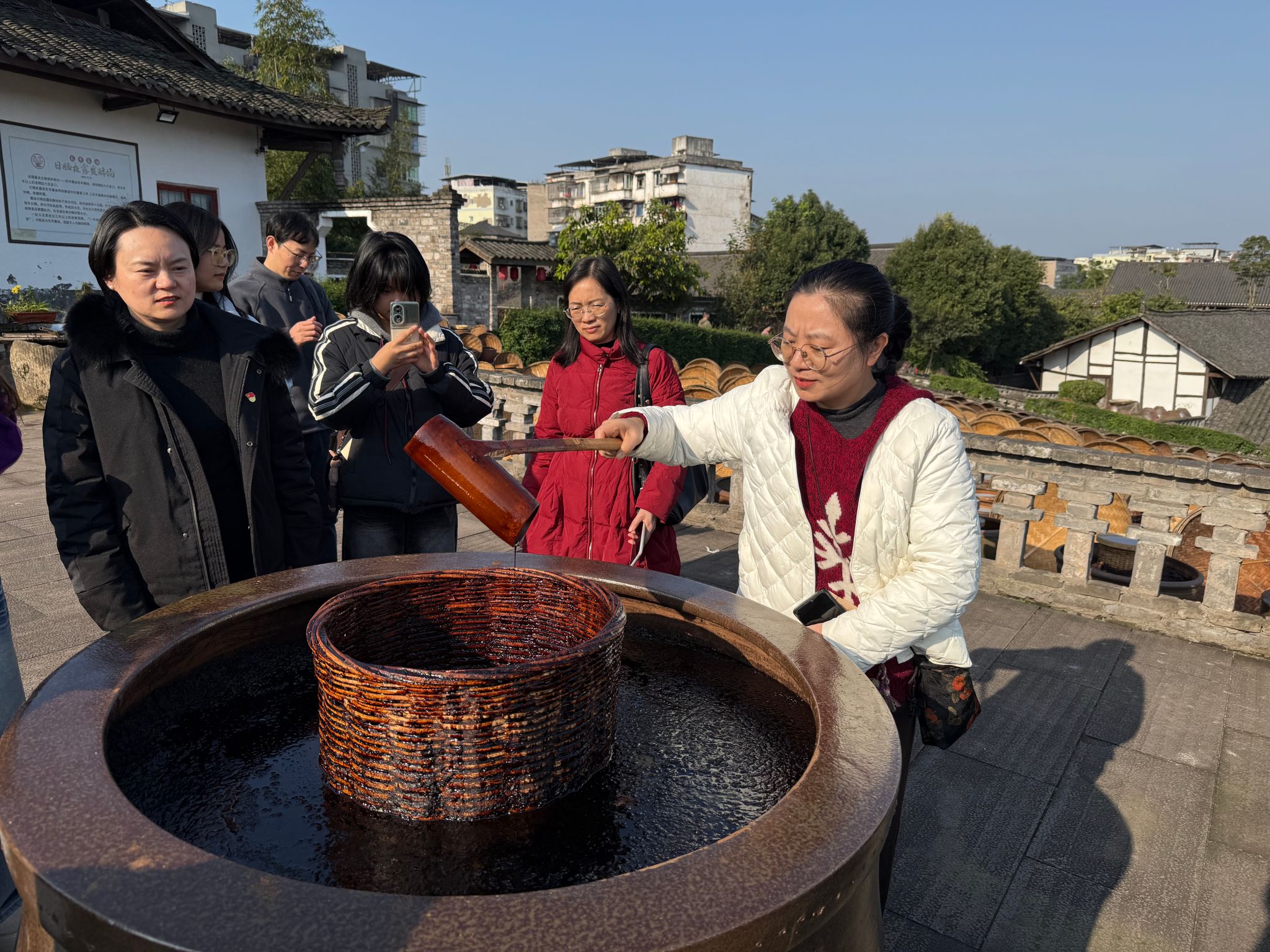 为进一步推动党建与专业特色、文化传承深度融合,12月5日,外国语学院党委组织师生党员前往位于四川省泸州市合江县赤水河下游的先市酱油赤水河庄园,开展了一场别开生面的主题党日活动。本次活动以“酿于古法,守于匠心”为主题,旨在通过实地探访国家级非物质文化遗产,引导师生党员在感悟传统技艺的深厚底蕴中,锤炼党性修养,增强文化自信,强化使命担当。