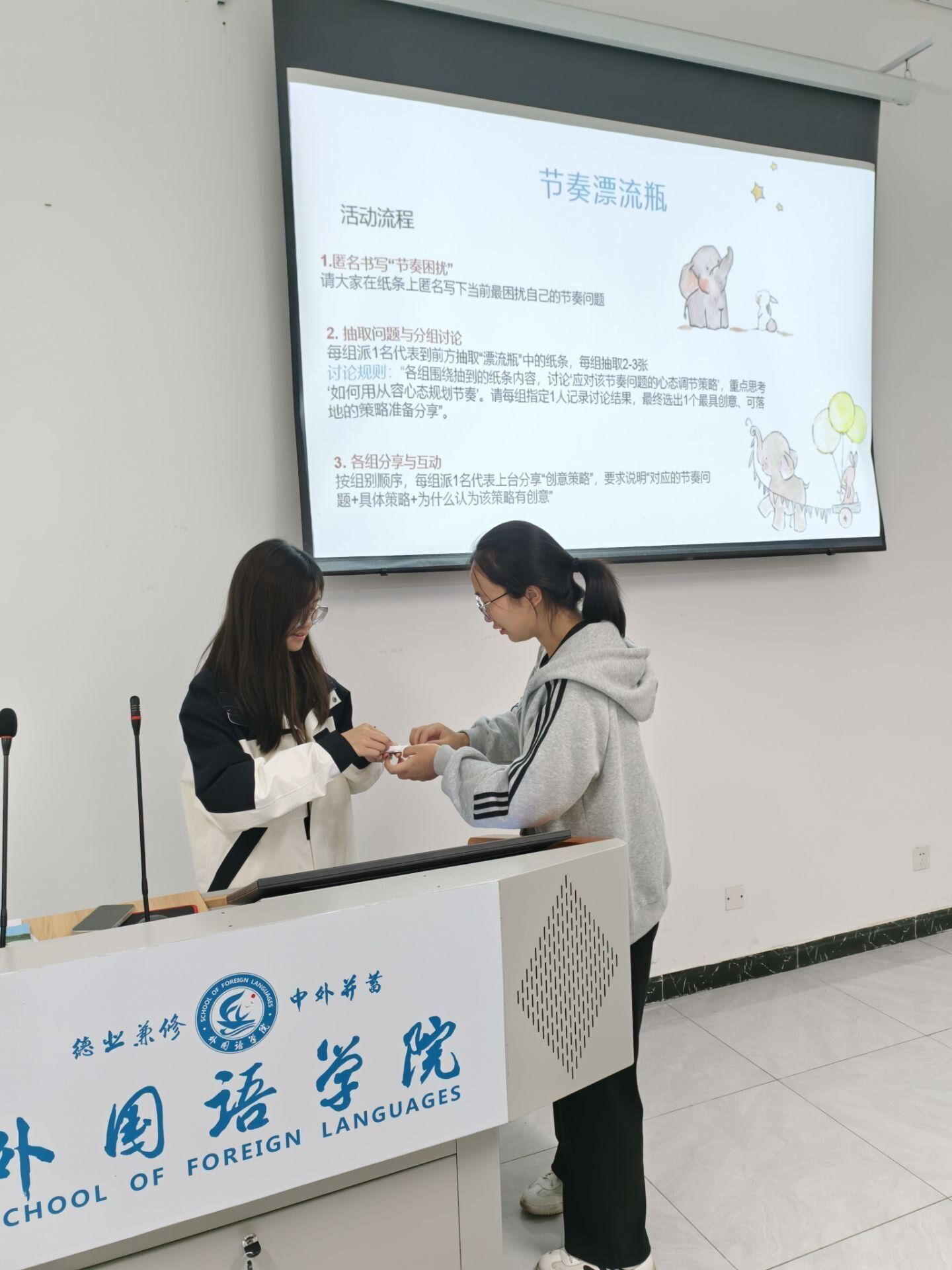 为提升同学们心理健康素养,培育积极阳光的心态,外国语学院于10月23日在文渊楼134教室组织2025级英语2班开展了“涵养心源,向阳生长”主题班会。本次班会由心理委员张雨涵同学主持,2025级英语2班全体同学共同参与,参会人数共计33人。