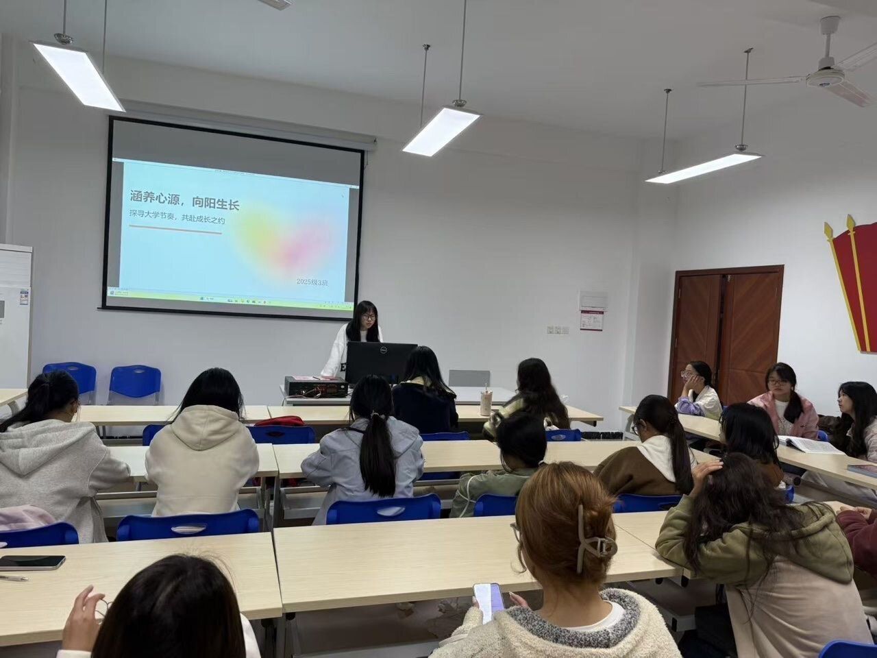 为引导学生深度觉察内心状态,系统掌握科学实用的情绪调节技巧与压力疏解方法,夯实心理健康根基,外国语学院10月21日在文渊楼117开展“涵养心源,向阳生长”主题班会,本次大会由心理委员李焱主持,25级英语3班全体同学参与,共计33人参与。