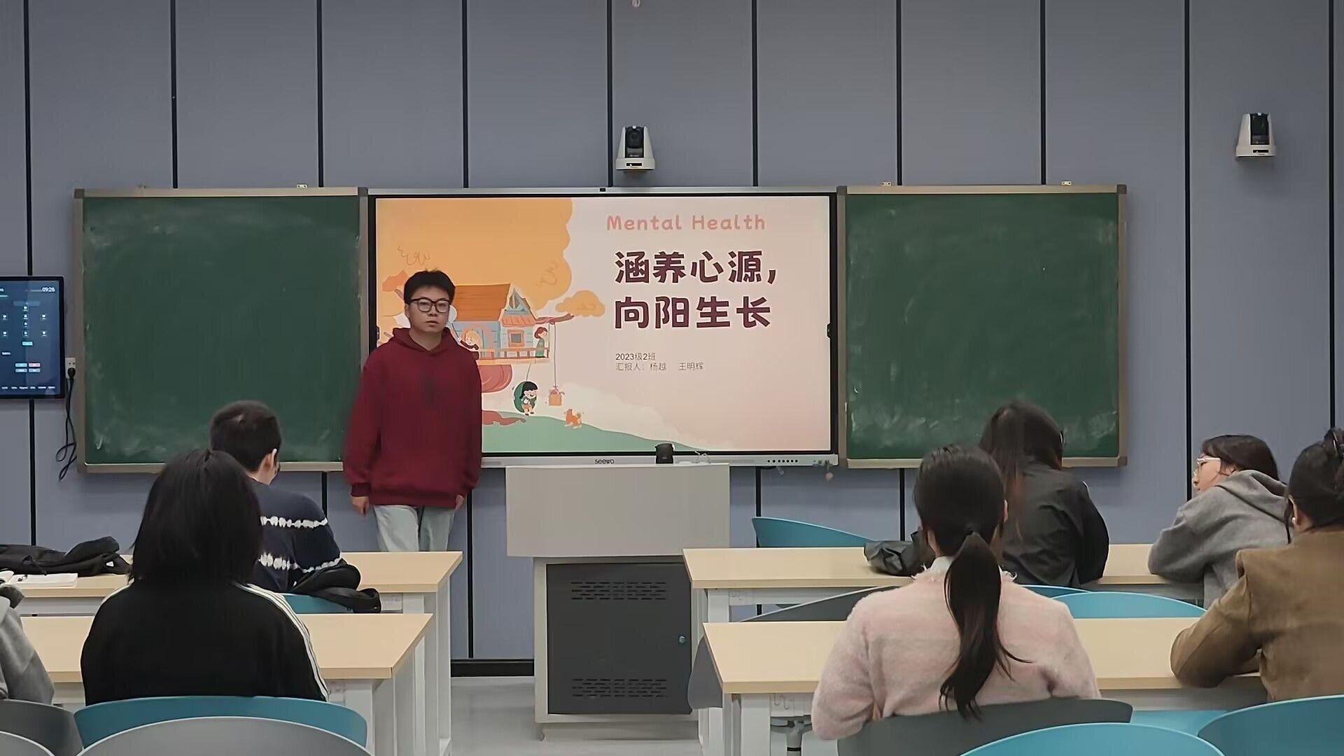 为引导同学们关注内心世界,学习自我滋养的方法,激发内在积极力量,以更加饱满、健康的心态面对成长中的风雨,外国语学院于2025年10月24日在文渊楼111教室组织2023级英语二班开展了“涵养心源,向阳生长”主题班会。本次班会由班级心理委员王明辉同学主持,2023级英语二班全体同学共同参与,参会人数共计26人。