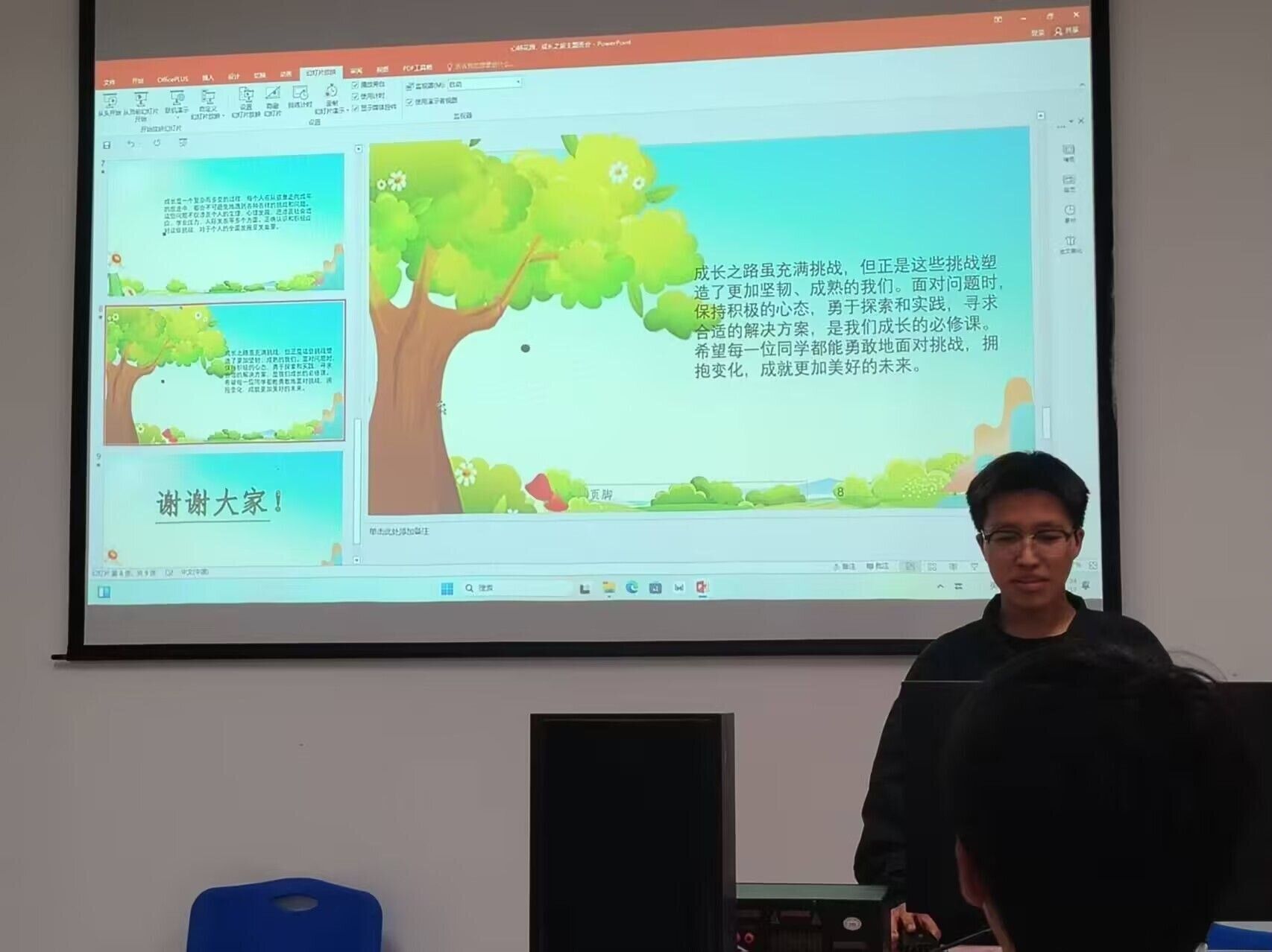 为提升心理调适能力,引导学生正确认识自我,树立积极人生态度,2022级英语2班于2025年10月23日在文渊楼134教室组织开展了“涵养心源,向阳生长”主题班会。本次班会由班级心理委员沙金福同学主持,22级2班全体同学参与。