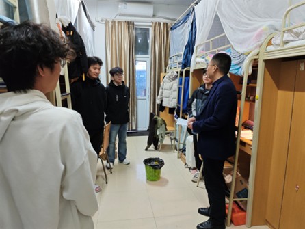 在学生宿舍,各位领导老师与同学们亲切交谈、促膝长谈,详细询问大家返校后的学习规划、生活适应情况,耐心倾听同学们的心声。走访过程中,老师们反复叮嘱同学们,要时刻绷紧安全之弦,注意防火防盗,守护好自身人身财产安全;同时,主动征求同学们对学校及学院新学期各项工作的意见,认真记录、积极回应学生诉求,并为同学们送上新学期的美好祝福。