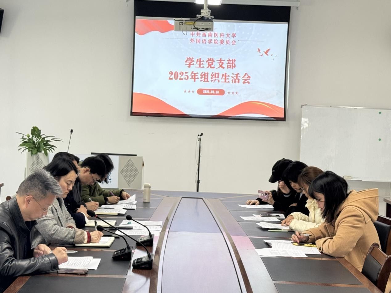 3 月 10 日下午 ,外国语学院学生党支部在文渊楼134会议室召开专题组织生活会,支部全体党员参会。会议严格遵循程序、扎实推进,取得良好成效。